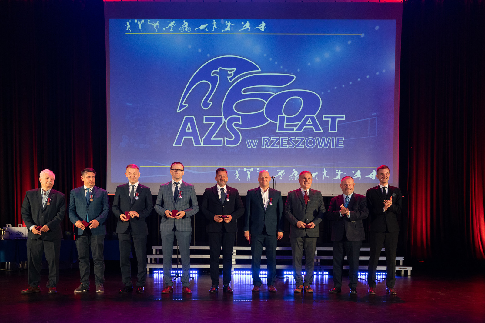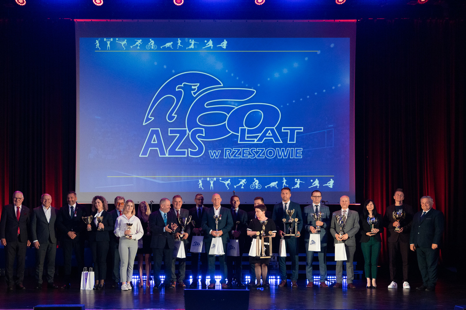 W uroczystości jubileuszowej wzięły udział ważne dla AZS osoby, m.in.: wicewojewoda podkarpacki Radosław Wiatr, członek Zarządu Województwa Podkarpackiego Stanisław Kruczek, przedstawiciel prezydenta Miasta Rzeszowa Tadeusz Szylar, prezes Zarządu Głównego AZS prof. dr hab. Alojzy Nowak wraz z członkami zarządu liczącego 32 osoby, sekretarz generealny AZS Dariusz Piektut, prezes AZS Rzeszów Janusz Zieliński, prorektorzy Politechniki Rzeszowskiej: prof. dr hab. inż. Jarosław Sęp, prof. dr hab. Grzegorz Ostasz, dr hab. inż. Lesław Gniewek, prof. PRz oraz prorektor Uniwersytetu Rzeszowskiego dr hab. Elżbieta Rokosz, rektor Państwowej Akademii Nauk Stosowanych w Krośnie dr hab. Zbigniew Barabasz, prof. PANS, dyrektor Biura Rektora Państwowej Wyższej Szkoły Techniczno-Ekonomicznej w Jarosławiu mgr Artur Świątek, prorektor Państwowej Akademii Nauk Stosowanych w Przemyślu dr Robert Oliwa, prorektor Wyższej Szkoły Informatyki i Zarządzania w Rzeszowie dr Małgorzata Gosek, a także około 300 byłych i obecnych zawodników, działaczy i sympatyków AZS oraz przedstawiciele mediów oraz firm wspierających codzienną działalność AZS.